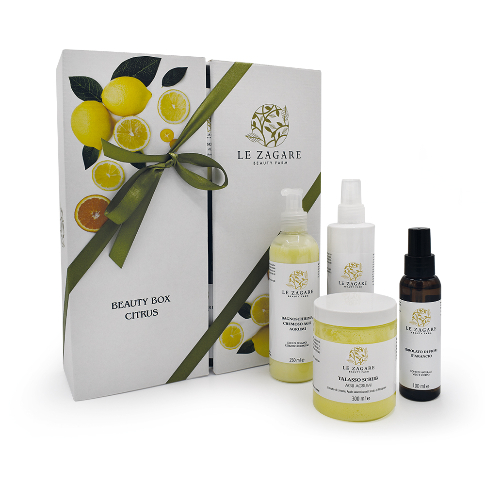 Immergiti in un'esperienza sensoriale unica con la nostra Beauty Box Agrumi di Le Zagare, un vero e proprio concentrato di benessere e vitalità per la tua pelle. Questo esclusivo cofanetto racchiude quattro prodotti sinergici, formulati con estratti naturali di agrumi, per una coccola rigenerante dalla testa ai piedi.